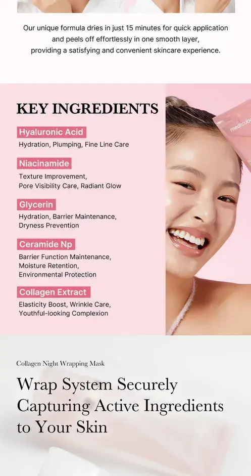 Mascarilla nocturna enriquecida con colágeno concentrado, que mejora eficazmente la elasticidad y la hidratación de la piel para lograr un acabado radiante y jugoso.